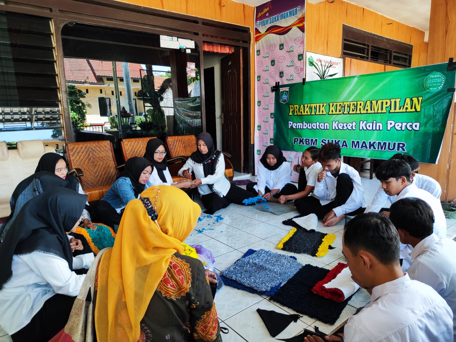 Salah satu program keterampilan di PKBM Suka Makmur adalah praktik keterampilan pembuatan keset dari kain perca. Program keterampilan ini dapat diakses oleh seluruh warga belajar PKBM Suka Makmur jenjang Keaksaraan, Paket A setara SD, Paket B setara SMP, dan Paket C setara SMA. Penyelenggaraan program keterampilan pembuatan keset dari kain perca merupakan salah satu program pembekalan keterampilan kepada warga belajar agar nantinya lulusan PKBM Suka Makmur mampu bersaing dan bertahan dalam persaingan kerja. Diharapkan dengan adanya program ini lulusan PKBM Suka Makmur memiliki modal keterampilan untuk menjadi wirausahawan mandiri. Selain itu program ini juga merupakan implementasi dari Project Penguatan Profil Pelajar Pancasila (P5) dengan tema Gaya Hidup Berkelanjutan.